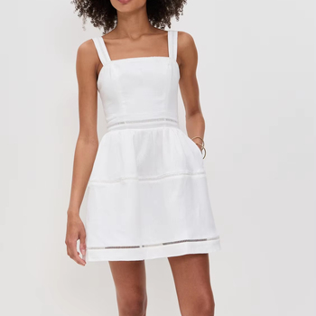 Women's Mini Solid White Halter Dress Casual Dresses with Natural Waistline Woven and Washable